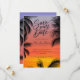 The Watercolor Sunset Palm Beach Wedding Save the Date features a stunning design with a vibrant watercolor sunset and silhouetted palm trees, perfect for announcing your special day with a touch of tropical romance and artistic elegance.