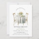Cute birthday brunch party invitations featuring a watercolor illustration of a fancy table and chairs. Event text is editable and can be changed to "birthday luncheon" or another occasion. The reverse side is an abstract watercolor background with coordinating shades of green.