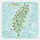 A digital watercolor style illustrated map of Taiwan with the names of the cities.