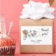 Thank you sticker, featuring a vintage watercolor tandem bag with a flower basket and heart-shaped petals. Suitable for weddings, couples shower, bachelorette parties, anniversaries or other.