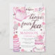 Watercolor Tea Party 4th Birthday Glitter Invitation