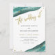 These elegant, modern wedding invitations feature watercolor teal geode stones, with faux gold typography and splashes.