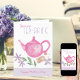 Add your personalised message to this cute and fun Mother's Day card for your terrific mum! The design has a pretty watercolor illustration of a pink teapot, flowers and perfect blend teabag. The wording reads You are Tea-rrific .. Happy Mother's Day. Inside, you can edit the sample message as you wish.