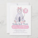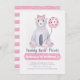 This girl's teddy bear picnic birthday invitation features a cute bear, balloon and cupcake on a scanned watercolor paper background. The design also includes a pink watercolor banner that acts as a background for the name. I wanted to create some watercolor invitations for children's birthday invitations because it's a lovely medium. In this design I've also added a grey font called Cool Britannia and some watercolor stripes on the back of the invitation. This watercolor girl's teddy bear picnic birthday invitation is ready to be personalized and can be used for various ages.