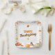Get together for a fun Thanksgiving or Friendsgiving celebration. Watercolor pumpkins, autumn leaves, a turkey, pumpkin pie, and a pilgrim hat feature among other items on this paper plate to make the holiday special. Tiny leaves surround the edges of the plate. Perfect accompaniment for the table at your Thanksgiving or Friendsgiving dinner or other autumn-time celebration. Available with matching products.