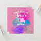Watercolor paint splashes in bright pink, blue and purple with gold glitter accents make this an abstract take on a traditional tie dye design. It is a perfect painting birthday party invitation or for someone with a bright personality. All text can be changed easily to make this invitation suit any occasion!