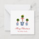 Elegant Personalised hand painted watercolor topiaries in blue and white pots Christmas note cards.