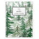 Customisable notebook featuring watercolor trees pattern. This woodland inspired illustration is a perfect personalised gift.