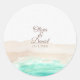 This round wedding sticker features watercolor ocean waves and soft sandy tones inspired by tropical beaches. Perfect for sealing envelopes, decorating favour bags, or adding a polished detail to wedding stationery. The minimalist coastal design pairs beautifully with destination and seaside weddings. Ideal for beach ceremonies, island celebrations, or resort weddings. Fully customisable with names, dates, or short messages. A simple yet elegant accent for tropical wedding decor.