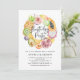 A tropical wreath birthday party invitation featuring watercolor wreath of pineapples, kiwis, avocados, citrus, papayas, dragonfruits, figs, pomegranates, apricots and bananas. Personalise by adding names and other event details. This tropical fruit wreath invitation is perfect for summer birthdays.