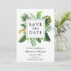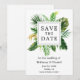 Modern Watercolor Tropical Greenery and Palm Leaves Save The Date Engagement Wedding Announcement Card