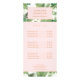 A watercolor pattern of tropical leaves and plants fills the background of this stylish rack card. Your name or business name is elegantly displayed in a pink and gold framed box at the top. An eye-catching card design perfect for beauty salons, boutiques, spas, tropical brands and businesses, or for personal use. Use as a price list, service menu or promotional piece. Original watercolor illustration and design © 1201AM Design Studio | www.1201am.com