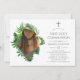Trendy tropical greenery leaves first communion designed to be quickly and easily customised to your specifics. A portrait shaped photo is recommended.
