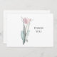Funeral, bereavement thank you card. Family name and thanks on the back. Black Typography. White background. Watercolor tulip. Colourful.