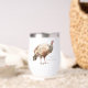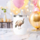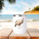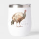 Thermal Wine Tumbler featuring a watercolor illustration of a turkey in muted green, brown and neutral colours with the script Happy Thanksgiving below image in a font colour to match illustration. The secure and leak-proof lid ensures worry-free transportation, making it the perfect companion for a Thanksgiving outdoor gathering.