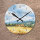 This elegant watercolor farmhouse Tuscan countryside scene personalised family name clock is the perfect accessory. Designed by Thisisnotme©