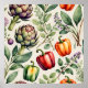 Celebrate fresh farm-to-table vibes with this charming watercolor pattern bursting with garden bounty. Vibrant bell peppers in red, orange, yellow, and green shine alongside majestic purple artichokes, delicate thyme sprigs with tiny lavender blooms, and lush green leaves. Set against a soft cream background, this wholesome vegetable design evokes sunny kitchens, healthy eating, and rustic countryside appeal.