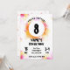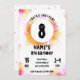 Capture the joy of a child's special day with this delightful invitation featuring a dynamic watercolor splash background in cheerful shades of pink, orange, and yellow. The bold black number "8" takes centre stage within a crisp white circle, instantly drawing attention to the milestone being celebrated. Playful fonts enhance the design, adding an element of fun and excitement. This eye-catching invitation is perfect for anyone looking to celebrate a child's birthday in style, making it an irresistible choice for your next party planning! 🎉🌟