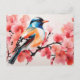 Watercolor Vibrant Bird In Cherry Blossoms Forest Postcard