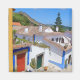 Watercolor Mediterranean village with white houses and red tiles with street view in Portugal