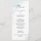 This watercolor wash blue wedding dinner menu card is perfect for a modern wedding. The simple and classic design features a splash of pastel light blue water colour with minimalist elegant style. This menu can be used for a wedding reception, rehearsal dinner, or any event.