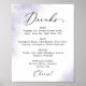 This watercolor wash purple wedding drink menu sign is perfect for a modern wedding. The simple and classic design features a splash of pastel lavender purple water colour with minimalist elegant style.