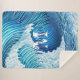 This design features a beautiful blue watercolor background with white ocean waves crashing against the shore.