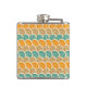 The flask itself is fine. It’s a cheap flask, obviously bought in bulk, however am prepared to overlook that. Given that it is a personalized item, I would have liked to have seen gift boxing instead of the generic packaging. Terrible printing, and/or quality. It’s a cheap, tacky vinyl. It is not cut straight and is also applied in a way that it is overhanging the bottom, causing the glue to catch on items and it will eventually roll and tear, damaging the wrap.