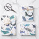 Watercolor Whales Ocean Fish Gold Blue Wrapping Paper Sheets.