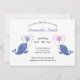 Featuring two cure whales with blue and pink balloons, this gender neutral gentle aquatic theme baby shower invitation card will make your guests smile.