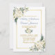 Watercolor White Floral Dusty Blue Gold Wedding Invitation