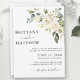 Watercolor Ivory White Floral Greenery Wedding Invitation Card includes ivory cream white roses and botanical greenery. Elegant Calligraphy Script.