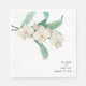 A beautiful watercolor wedding design featuring white Orchid botanicals. An arrangement of watercolor Orchids with greenery. A modern minimalist design for anyone who loves white watercolor Orchids and leaves and botanical themed wedding stationery. An elegant white Orchids and greenery wedding napkin design with modern elements. Matching wedding invitations and other stationery items are also available.