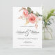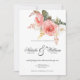 Watercolor white pink coral roses floral wedding invitation