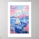 Watercolor White Sailboats Blue Waters Pink Floral Poster