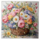 Watercolor Wicker Basket with Summer Flowers Ceramic Tile