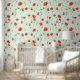 Watercolor Wild Poppies on Delicate Green Wallpaper