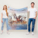 Fleece blanket featuring a watercolor painting of wild running horses. The texts are optional.