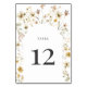 Modern, boho table number card features a modern arch, elegant serif font, and delicate wildflowers in soft shades of blush pink, yellow, purple, ivory, and green. Create as many table numbers as you need by changing the "12" to your desired number and add 1 item to your cart. Repeat for as many table numbers needed.