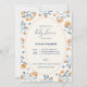 This elegant, minimal, stylish, vintage boho watercolor hand-printed wildflowers baby shower invitation, perfect for spring, summer, fall, autumn baby shower. Design create in vintage cream, orange, blue colour theme.