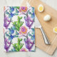 Watercolor Wildflower Cactus Pattern Tea Towel