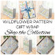 This gift bag features a watercolor wildflower pattern in shades of green, yellow, orange, and blue.