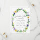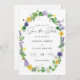 This is a lovely rustic wildflower wedding save the date invitation. The design features a wreath made with a variety of spring wildflowers including yellow daffodils, purple pansies, clovers, lavender, sweetpeas, dandelions, tulips and fern and ivy greenery. It also includes a few ladybirds, a sweet dragonfly and a message and photo on the back.