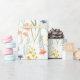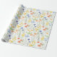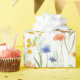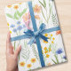 This gift wrapping paper features a watercolor wildflower pattern in shades of green, yellow, orange, and blue.