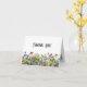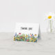 A border of bright watercolor protea wildflowers with large fanciful "Thank You" greeting, matching element inside, name on back, decorate this 4"x5.6" note card. Change or remove any text to make it yours, using the Template provided. White envelope is included or mark "none" for reduced price. Also available in 5"x7" and 8.5"x11" sizes. Highly rated and excellent print quality. See "About This Product" at side for more information.