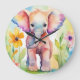 Watercolor Wildlife Elephant Large Clock