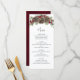 These elegant winter-themed wedding menu cards feature a Christmas themed bouquet at the top with watercolor greenery, pine cones and winter evergreen branches, accented with burgundy red holly berries. On the back is a burgundy watercolor texture, with the names of the bride and groom and wedding date. Find the rest of the wedding invitation suite and more matching products in the collection, or message me through Zazzle Chat if you need design tweaks or more matching products.