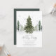 This modern holiday party invitation is a wonderful choice for your event. Featuring green watercolor forest tree illustrations and snowflakes. The trendy calligraphy script font is paired with a classic serif for a chic look. Use the online template tools to personalise this unique invite for your family Christmas dinner, corporate holiday events or office Christmas party.