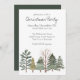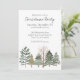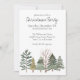 This simple and elegant, yet festive Christmas party invitation features a cosy watercolor design. An image of a winter forest is placed across the bottom, with various trees sprinkled with snow.