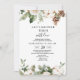 Watercolor Winter Green Pine Tree & White Flowers Invitation